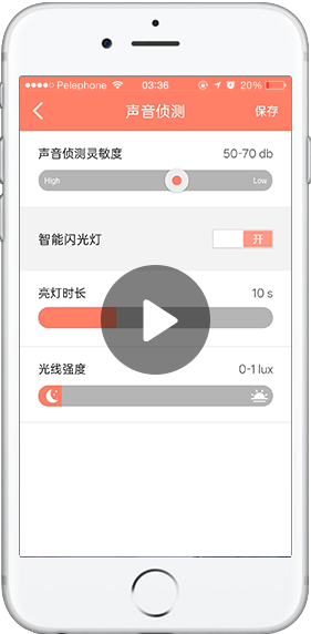 在观看端或采集端设置中打开声音侦测,设置好侦测时段和分贝阈值,采集端软件就会在指定时间自动开启声音侦测,一旦声音超过阈值,立即就会向观看端手机发送报警通知